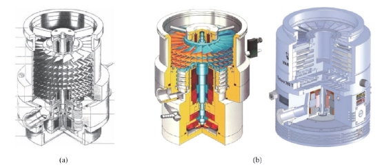 分子泵分類:(a)渦輪分子泵。(b)復合分子泵