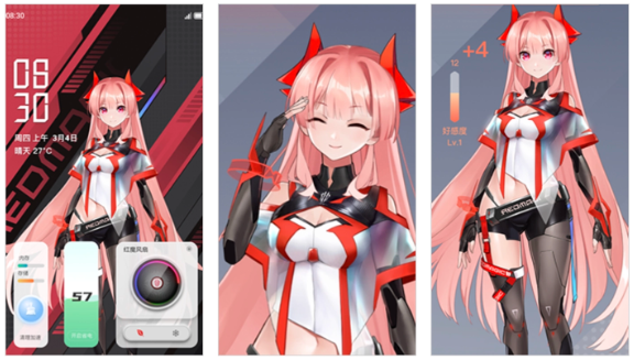 據(jù)了解,"紅魔姬"是紅魔游戲手機(jī)搭載的二次元智能助手,不僅可以在紅魔手機(jī)上使用,還支持在第三方手機(jī)上安裝。與之類似的還有黑鯊手機(jī)的"鯊鯊醬"。"紅魔姬"具備為用戶提供語音提醒的功能,用戶還可以將其設(shè)置為桌面動態(tài)背景,并自由更換其服裝。