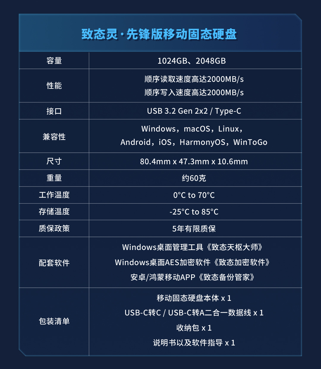 致態(tài)靈還廣泛兼容個人電腦、智能手機、智能平板、智能電視等多種設(shè)備,附贈二合一數(shù)據(jù)線,無需驅(qū)動,即插即用,滿足工作、生活、娛樂等多場景存儲需求。