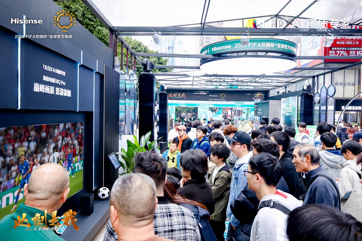 作為2025海信 X FIFA世俱杯獎(jiǎng)杯中國(guó)行系列活動(dòng)的重要環(huán)節(jié),海信電視重慶線下店為當(dāng)?shù)厍蛎跃脑O(shè)計(jì)了多項(xiàng)體驗(yàn)打卡項(xiàng)目。在播放精彩鏡頭集錦時(shí),每出現(xiàn)進(jìn)球抑或錯(cuò)失破門良機(jī),都會(huì)引來人群的喝彩或惋惜。還有最受歡迎的“FIFA足球游戲?qū)?zhàn)體驗(yàn)”:當(dāng)游戲界面出現(xiàn)在百吋大屏上,立體逼真的球員形象,極具穿透力的賽場(chǎng)助威聲效,猶如吹響集結(jié)號(hào)一樣,將人群迅速吸引過來。