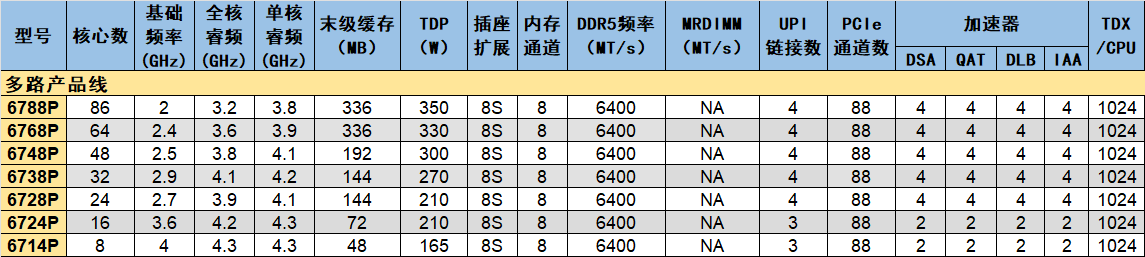 從產(chǎn)品定位角度看,至強6700/6500性能核處理器可以進一步細分為高性能、主流、多路、單路等產(chǎn)品線。